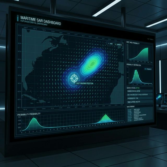 In the critical moments following vessel abandonment, traditional search patterns often fail to account for the dynamic complexity of maritime environments. This project bridges the gap between Naval Architecture and AI System Design by deploying a Dynamic Bayesian Network to infer survival craft trajectories. By synthesizing real-time atmospheric data with high-fidelity leeway coefficients, the engine generates an evolving probability heat map, significantly compressing search windows and optimizing life-saving asset deployment.